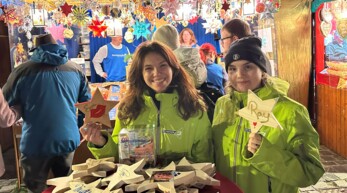 Verkauft werden nicht nur Holzsterne, sondern auch Engel, Bäumchen und andere wunderschöne handgefertigte Weihnachtselemente.