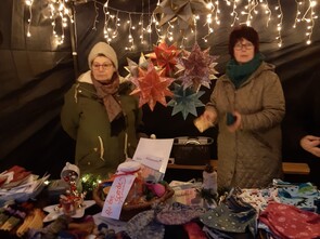 Auch in diesem Jahr engagierte sich Inge Wantscher erneut. Besucherinnen und Besucher des Adventmarkts erfreuten sich an selbstgemachten Kuschelkissen, gestrickten Socken und gebastelten Engeln. Die Gemeinde Oberhaid, Freunde und Familie unterstützten sie tatkräftig.