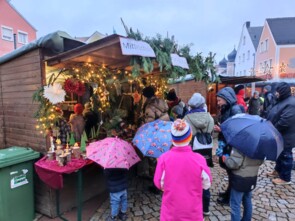Trotz Regen und starkem Wind - teilweise mit Orkanböen - kamen viele Besucher auf den Köschinger Marktplatz, wo das Organisationsteam wieder einen Weihnachtsmarkt zugunsten von Sternstunden vorbereitet hatte.