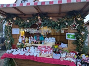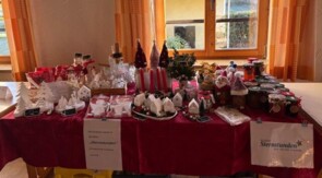 Zu den angebotenen Waren gehörten verschiedene Sorten Marmelade in Gläsern mit Schneemann-Deko, Eiskonfekt, eine kleine Auswahl von Sternen, Kerzen auf selbstgefertigten Ständern, Geschenketaschen aus Glasperlen, Winterlandschaften aus Reliefguss sowie gestrickte Handschuhe, Mützen und Schals. Aus diesen Verkäufen erzielte sie Einnahmen in Höhe von 741,- €, die sie ohne jeglichen Abzug für Materialkosten weitergeben möchte. Für zwei Nachbarinnen bot sie zudem selbstgemachte Plätzchen sowie gehäkelte Tiere und Fabelwesen als Kinderspielzeug an und erzielte damit einen zusätzlichen Gesamterlös von 69,- €.