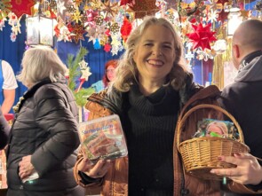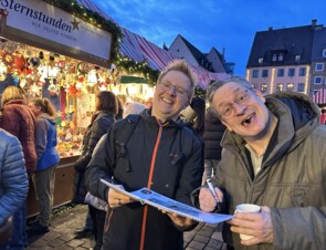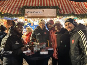 Am Dienstag gaben Gospelchorleiter Oliver Schott und seine Ehefrau Michaela Schott ihr Debüt als Unterstützer am Sternstunden-Stand. Zahlreiche Fans hatten sich wegen ihm auf den Weg zum Markt gemacht und gemeinsam geschaffene Erinnerungen wurden ausgetauscht. Erst letzte Woche verzauberte er die Zuhörerinnen und Zuhörer im Winterdorf am Jakobsplatz in Nürnberg.