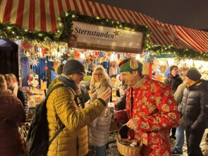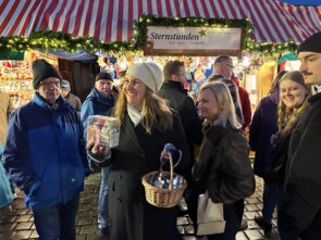 Außerdem gab es an diesem Nachmittag noch einen unverhofften Überraschungsgast. Anna Planken, die unter anderem zum Moderatoren-Team des ARD-Morgenmagazins zählt, stand mitsamt eines Filmteams vor dem Sternstunden-Stand, um Aufnahmen für die Sendung „So schön klingt Weihnachten!“ mit Liedern, Songs und Geschichten aus Deutschland zu drehen. Ausstrahlungstermin ist am 21.12.2025 um 18.15 Uhr in der ARD und von 23.-25. Dezember in den Dritten Programmen.