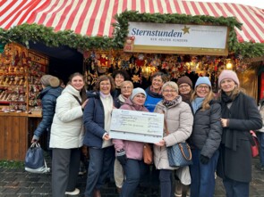 Von unserem Partner, der BayernLB und von der Musikgruppe „Sax’n Die“ gab es am Abend zwei symbolische Scheckübergaben. Die Kolleg:innen der BayernLB sammelten Spenden auf einem internen kleinen Weihnachtsmarkt und die Mädels von "Sax’n Die" nahmen ein Sparschwein mit zu ihren Konzerten, in das Geld für Sternstunden eingeworfen werden konnte.