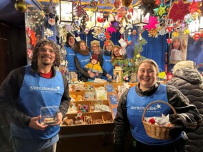 Zwei Damen aus Michigan, die eigens für den weltberühmten Christkindlesmarkt angereist waren, ließen sich von der festlichen Atmosphäre und dem Engagement von Sternstunden verzaubern. Ihre Begeisterung für die selbstgebastelten Sterne und die gute Sache war spürbar – und ihre großzügige Spende unterstrich eindrucksvoll ihre Wertschätzung für den Markt und die Initiative.