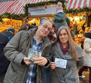 Zwei Damen aus Michigan, die eigens für den weltberühmten Christkindlesmarkt angereist waren, ließen sich von der festlichen Atmosphäre und dem Engagement von Sternstunden verzaubern. Ihre Begeisterung für die selbstgebastelten Sterne und die gute Sache war spürbar – und ihre großzügige Spende unterstrich eindrucksvoll ihre Wertschätzung für den Markt und die Initiative.