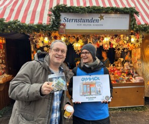 Der Nürnberger Cartoonist, Liedermacher und Schauspieler Tobias Hacker, alias GYMMICK, feierte in diesem Jahr seinen ersten Auftritt am Sternstunden-Stand. Mit im Gepäck hatte er seinen neuen Kalender, der reißenden Absatz fand.