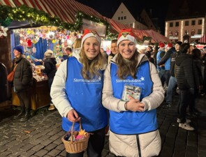 Zwei Damen aus Michigan, die eigens für den weltberühmten Christkindlesmarkt angereist waren, ließen sich von der festlichen Atmosphäre und dem Engagement von Sternstunden verzaubern. Ihre Begeisterung für die selbstgebastelten Sterne und die gute Sache war spürbar – und ihre großzügige Spende unterstrich eindrucksvoll ihre Wertschätzung für den Markt und die Initiative.