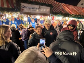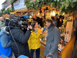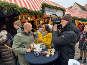 Außerdem gab es an diesem Nachmittag noch einen unverhofften Überraschungsgast. Anna Planken, die unter anderem zum Moderatoren-Team des ARD-Morgenmagazins zählt, stand mitsamt eines Filmteams vor dem Sternstunden-Stand, um Aufnahmen für die Sendung „So schön klingt Weihnachten!“ mit Liedern, Songs und Geschichten aus Deutschland zu drehen. Ausstrahlungstermin ist am 21.12.2025 um 18.15 Uhr in der ARD und von 23.-25. Dezember in den Dritten Programmen.
