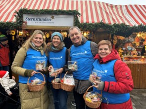 Es verdeutlicht, wie groß die Sternstunden-Familie inzwischen geworden ist. Angefangen bei all den Bastlerinnen und Bastler, die uns ihre wunderschönen Bastelarbeiten überlassen, über die vielen ehrenamtlichen Helferinnen und Helfer, die großartige Arbeit bei Wind und Wetter am Stand leisten. Nicht zu vergessen die Prominenz aus Politik und Sport, Medien und Unterhaltung, die immer wieder gerne für Sternstunden Spenden sammelt, bis hin zu den treuen Spenderinnen und Spendern, die zum Teil extra wegen des Sternstunden-Standes zum Nürnberger Christkindlesmarkt anreisen.